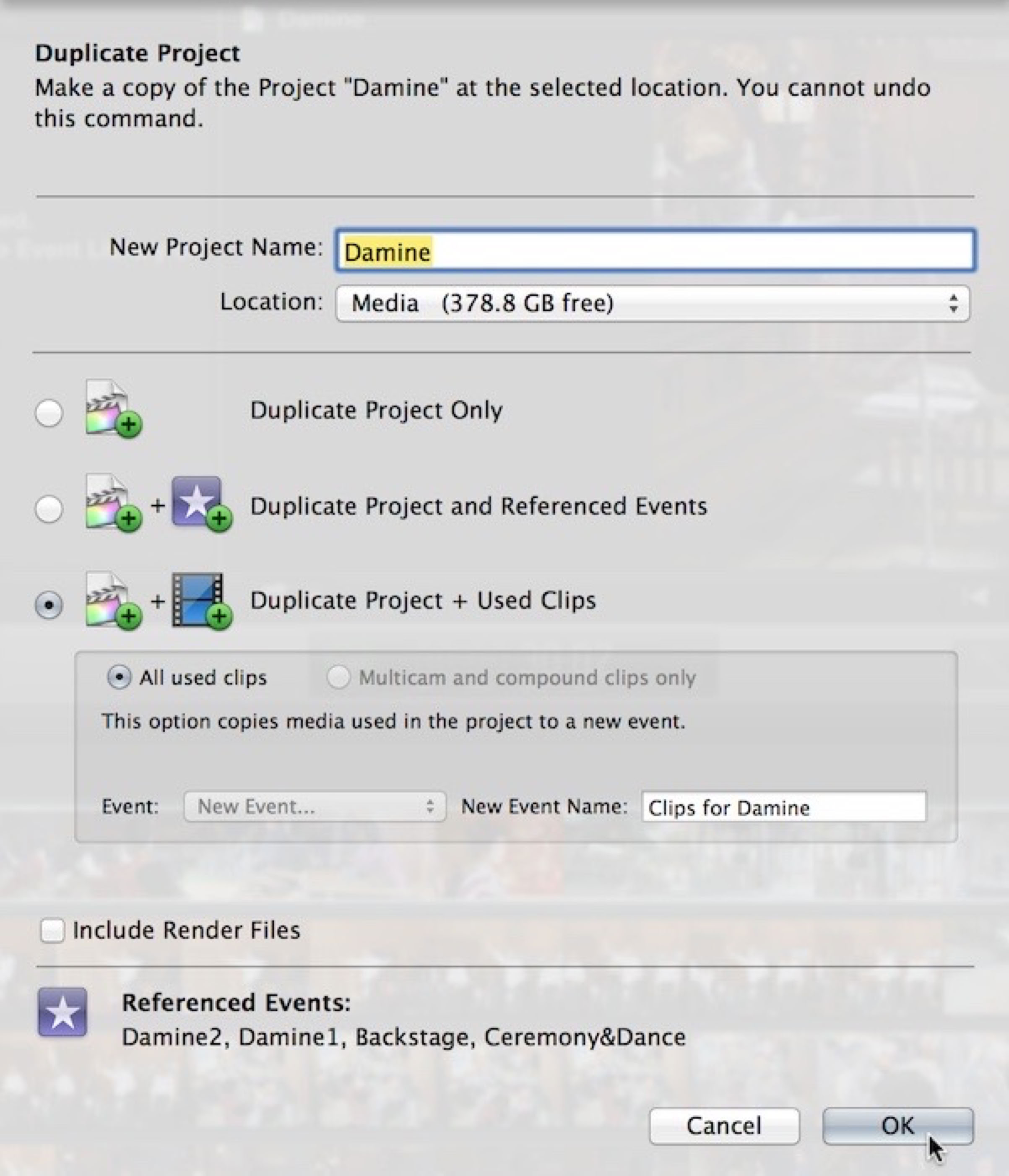 4. Then select either Duplicate Project and Referenced Events or Duplicate Project + Used Clips.