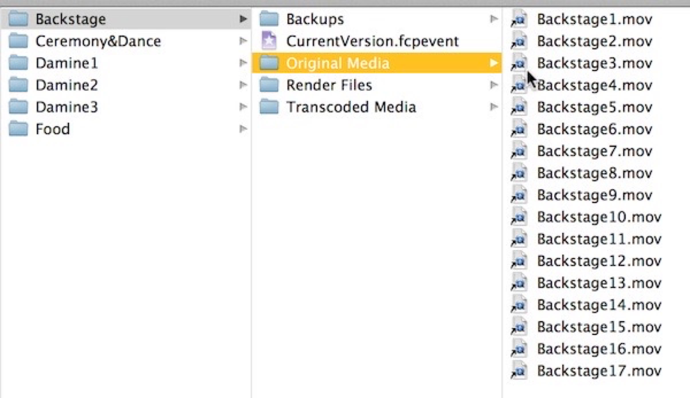 This will copy all the media into the events, replacing the aliases, making the events ready to archive. Make sure you have plenty of drive space as this can take big chunks of hard drive memory, depending on the format of your original media. When it’s done quickly check through the Original Media folder for each event to make sure the media is there.