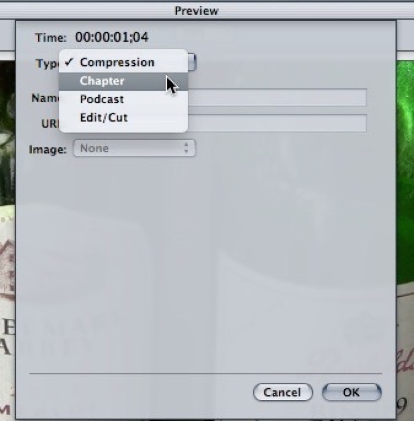 One of the features missing in FCP is the ability to add chapter markers for DVDs or QuickTime files. Fortunately this can be done in Compressor in a couple of different ways, either directly in the Preview window, or from a text file containing the information.