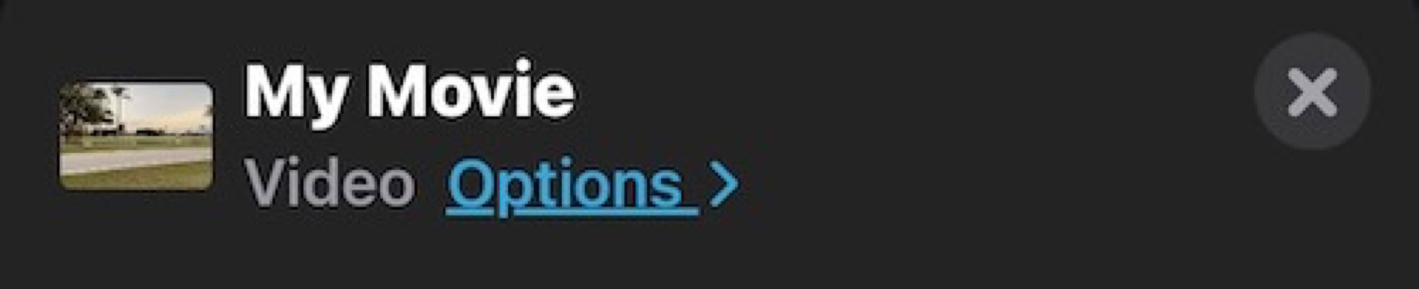In the available Share options, at the top you’ll see the movie and underneath it an important selection for Options.