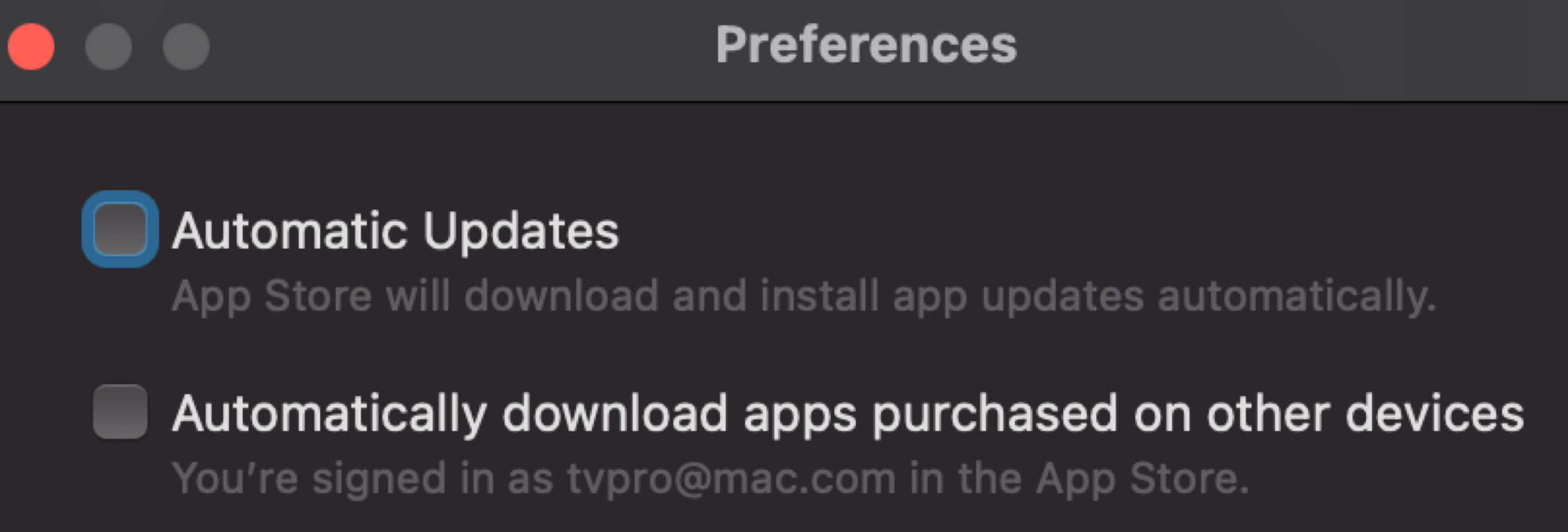 And the System Preferences Software Updates are also set correctly.In Software Updates click on Advanced. Set the preferences like this:
