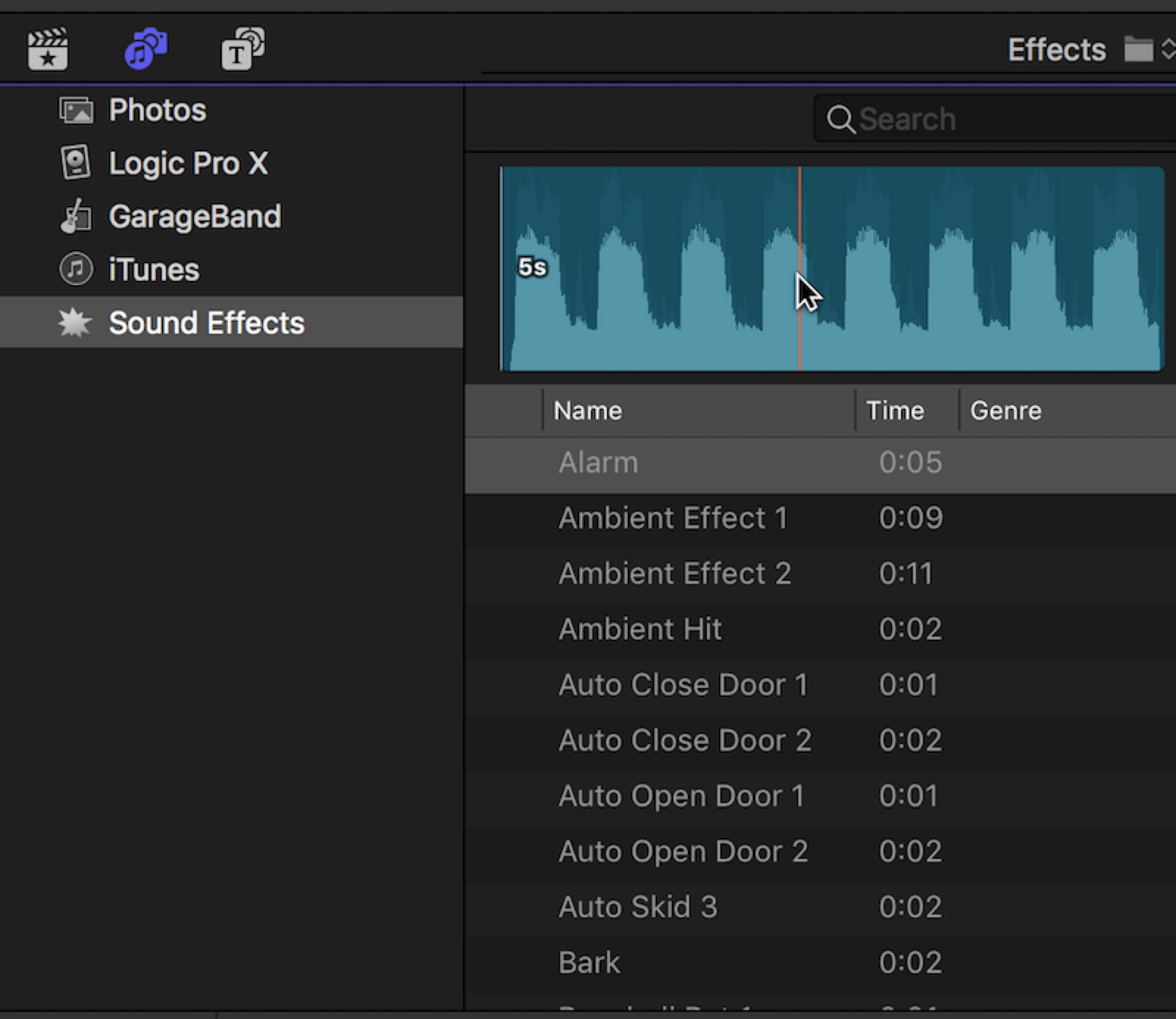 Another new feature in the Audio Browser is the ability to use the Skimmer to quickly listen to clips to try them out.You can obviously drag items from the Photos and Audio Browser into a project. To drag them into an event directly, simply select them and drag them left of the sidebar, which will immediately change to the Libraries Sidebar, allowing you to drop the items into any event you want.