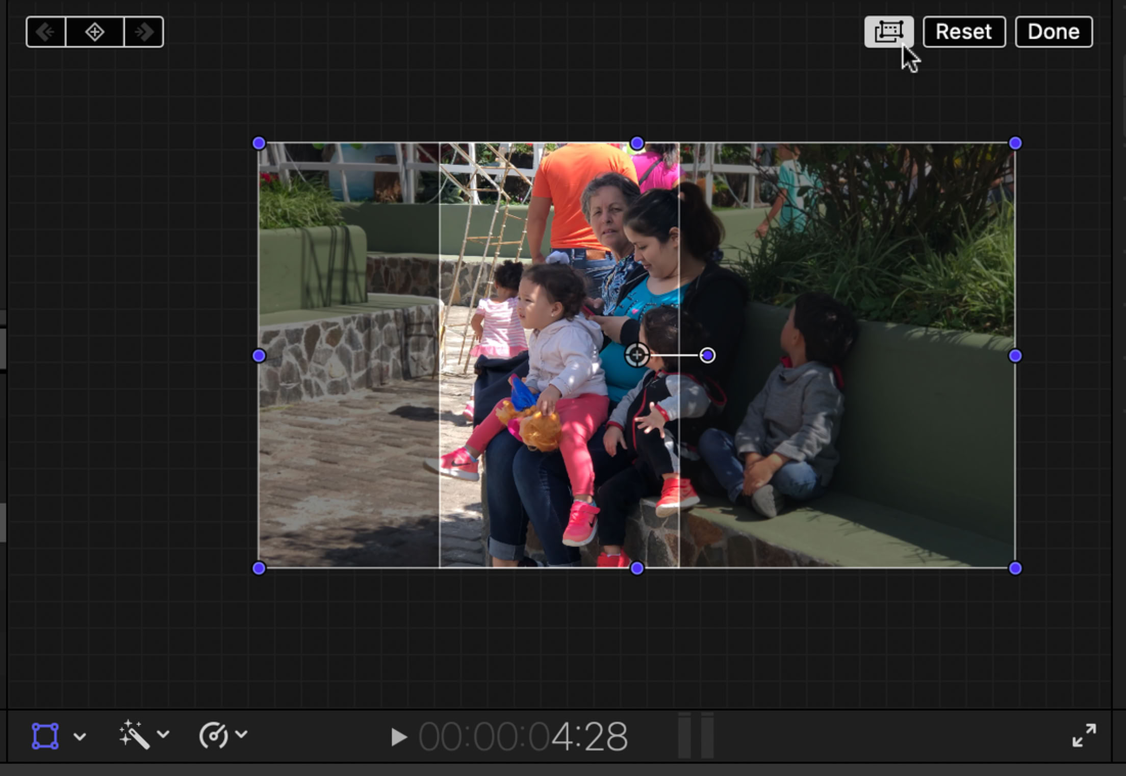You have been able to make custom projects in vertical or square aspect ratio, but not these features are built into the project pane. In addition existing projects can be convert to these formats. First, you’ll want to use overlays to make sure your titles line up. You’ll need to add the overlay using View>Show in Viewer>Choose Custom Overlay>Add Custom Overlay. This is also in the Viewer’s View menu. But first you have to create the overlay, which is a 16:9 graphics file with the central vertical of square area. The wonderful guys at Ripple Training, Steve Martin and Mark Spencer, (https://www.rippletraining.com) have created a pair that you can download. You can download it through this link https://bit.ly/3jo7vy3. Once you’ve added the overlays they are stored in ~/Library/Application Support/ProApps/Custom Overlays. In the Viewer View popup you can set the transparency of the black area. Here it’s set to 50%, but 75% usually works better.