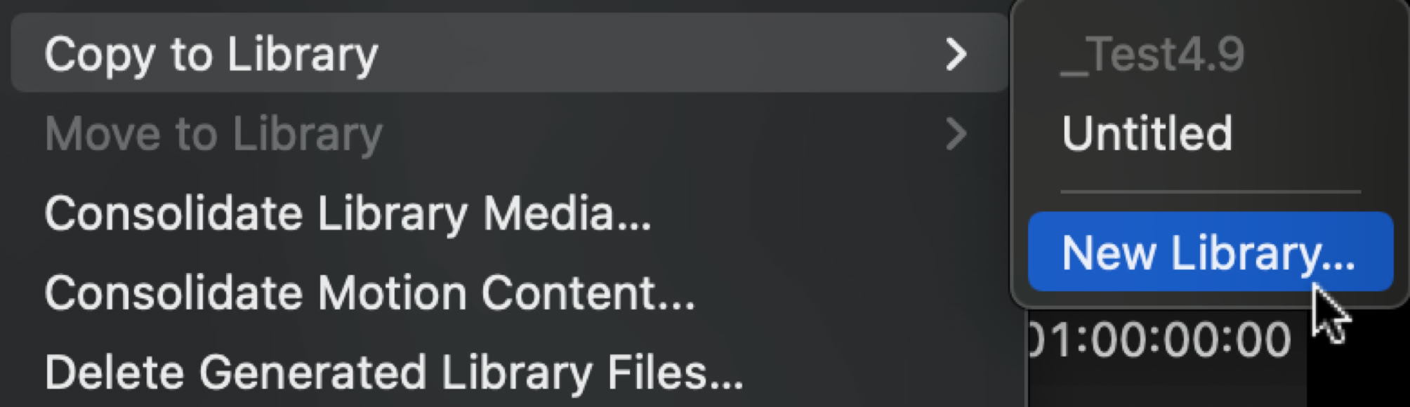 As part of the new proxy workflow there is also a new feature that you can, by right-clicking on the library or by using the File menu, copy a library to either an existing library or to a new library.