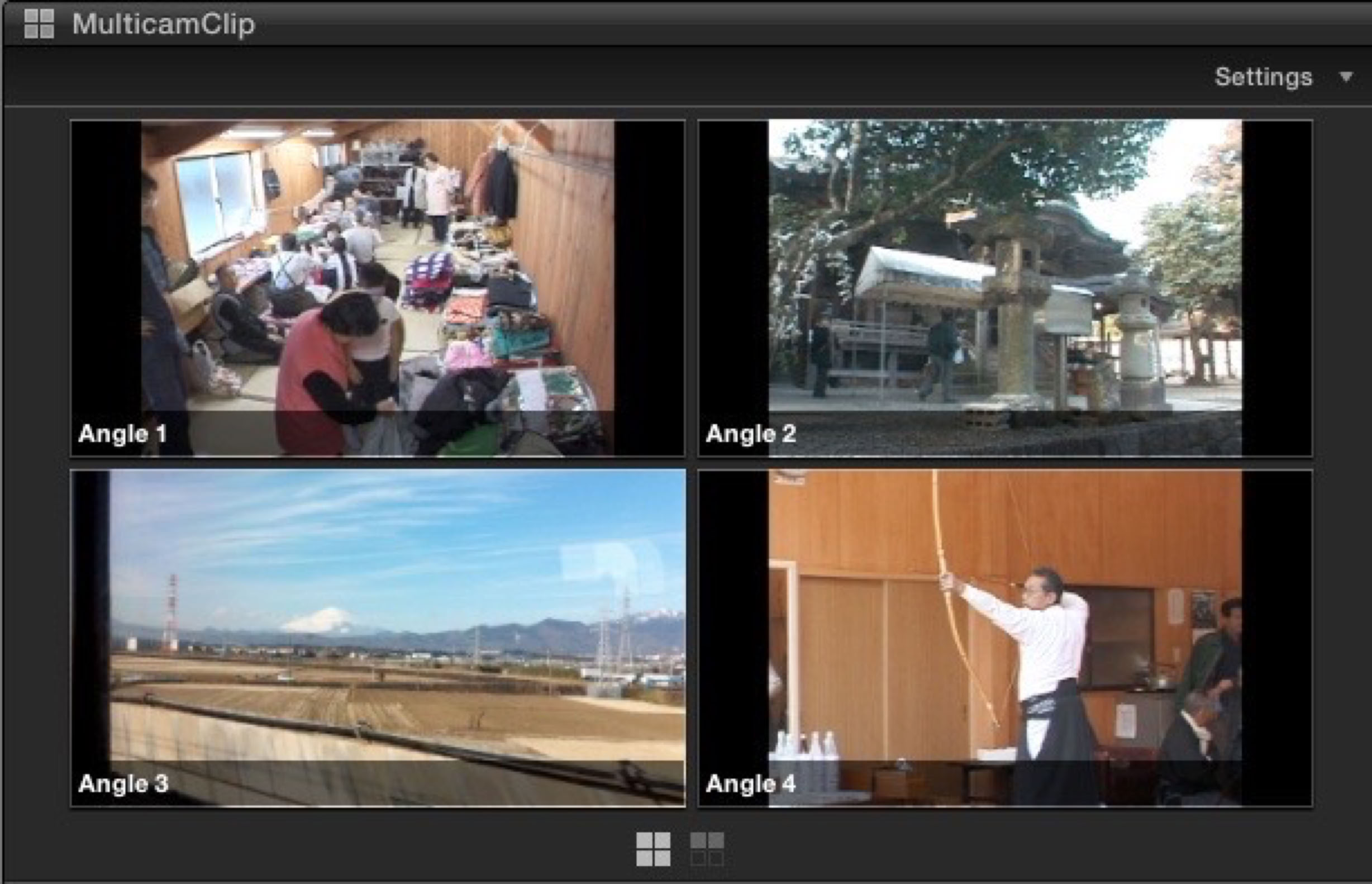 Once you’ve created the multicam clip, it appears in the Event Browser with the little quad split icon in the upper left corner. This icon will appear in the browser, on the clip in the Timeline, and also in the Angle Viewer and Angle Editor.