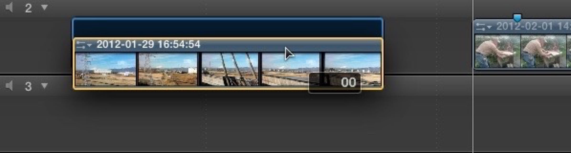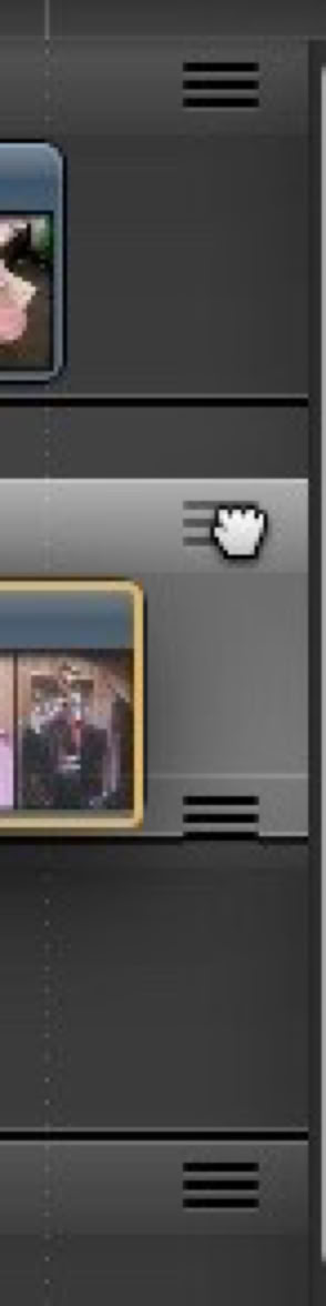 To change the the order of the clips, grab the handle icon that appears at the end of the lane and drag the angle up or down in the lanes. This is especially useful if you’re working with a music clip for instance that has no video. You can drag the music to the bottom of the stack order so it’s out of the way.
