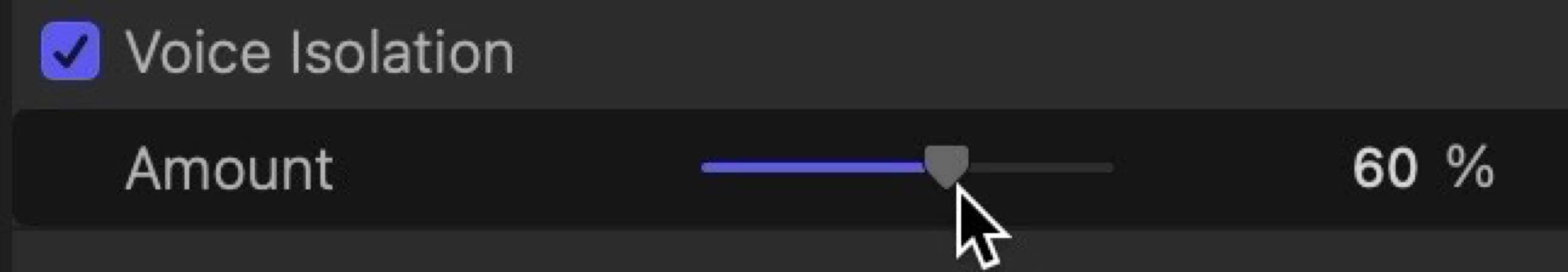 FCP 10.6.2 adds Voice Isolation to the application. It requires the AI assistance available in macOS Monterey 12.3 or later. The application uses machine learning to quickly read the background and isolate the voice. You can activate it with a checkbox in the Audio inspector and adjust the amount of background suppression you want to have.