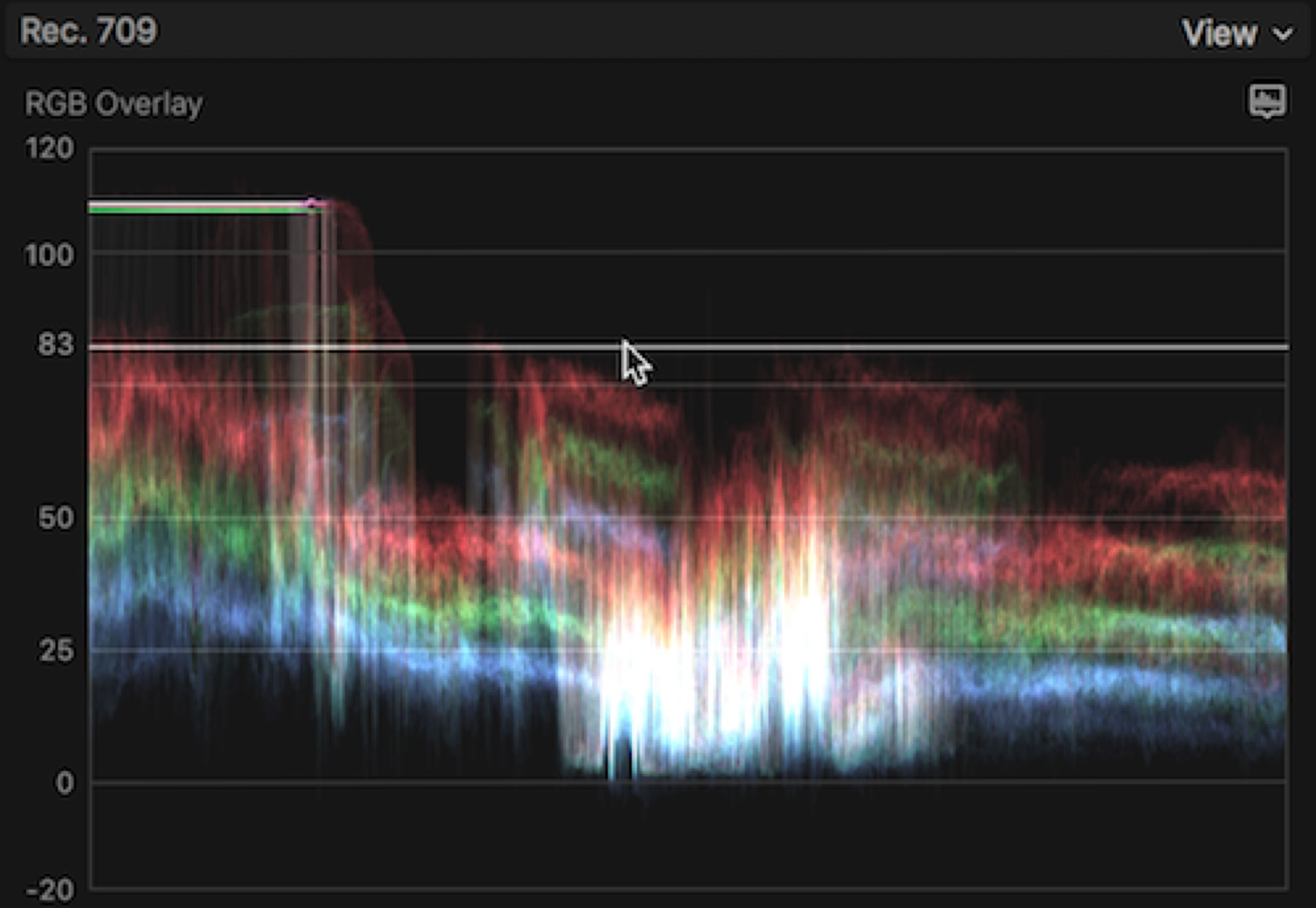 A side note: A feature in 10.4’s scopes is the ability to set a line in the waveform or RGB Parade to use as a reference. Simply skim in the waveform and click to set a reference line.