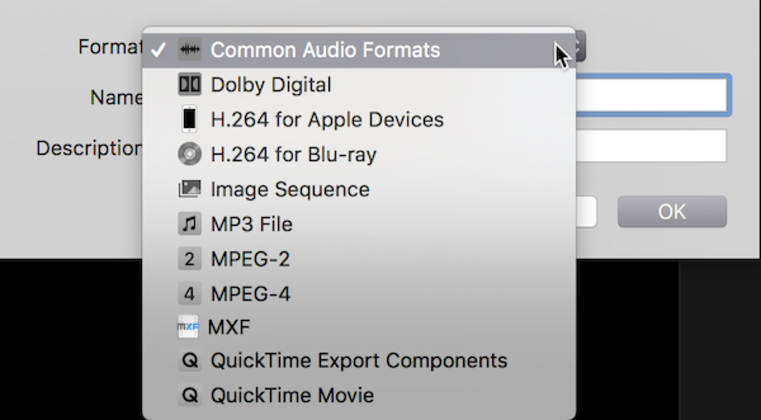 You have a number of different starting points such as audio formats, image sequence output, MPEG-2, MPEG-4, which is not available anywhere in the Apple presets, and of QuickTime.