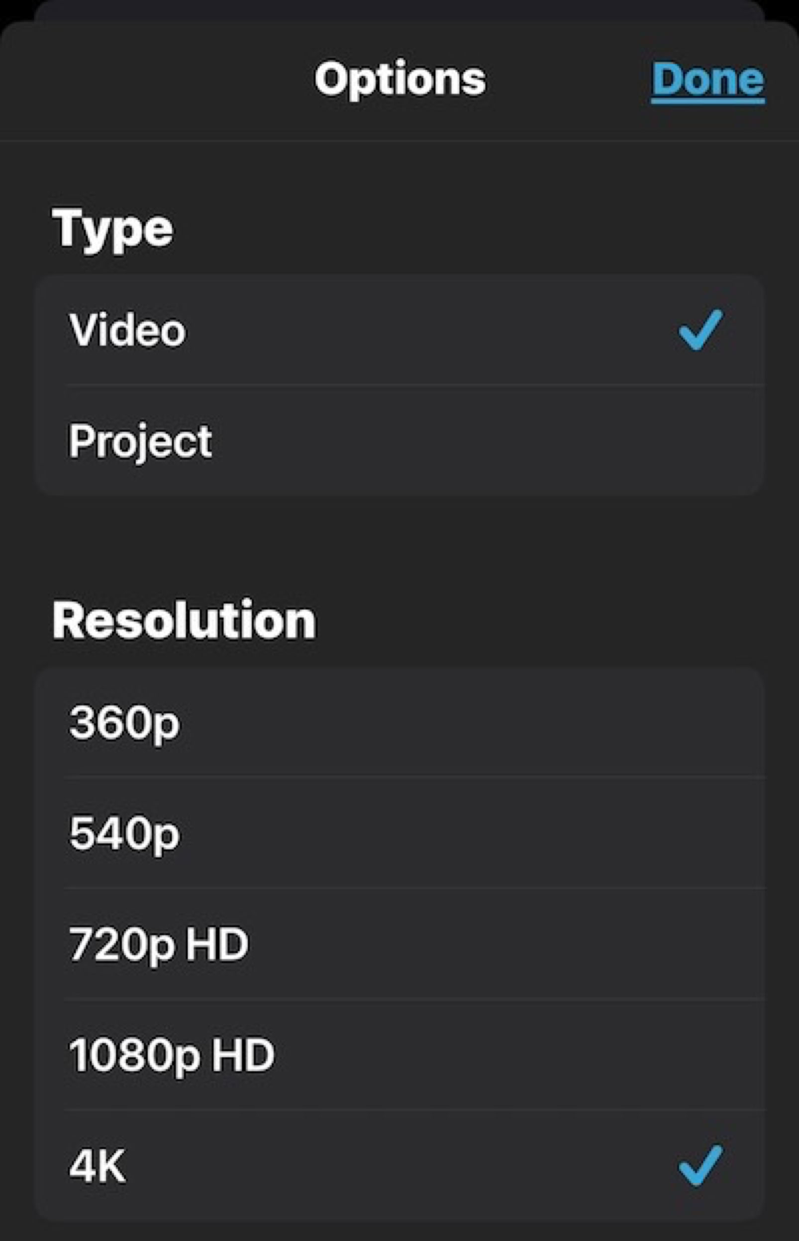 In the available Share options, at the top you’ll see the movie and underneath it an important selection for Options.