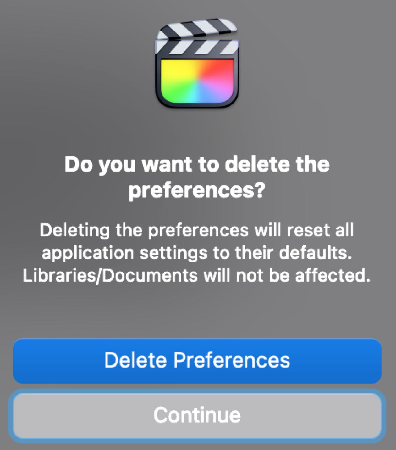 Whenever the application is behaving oddly, or after it has crashed, it will crash, all applications crash, the first thing you should do is trash your preferences. There are basically two ways to do this: the simple way implemented by Apple, and a more complex, but more capable way using Digital Rebellion’s Preference Manager. The simple way is to relaunch the application while holding Option-Command, which will bring up a dialog before the application opens.