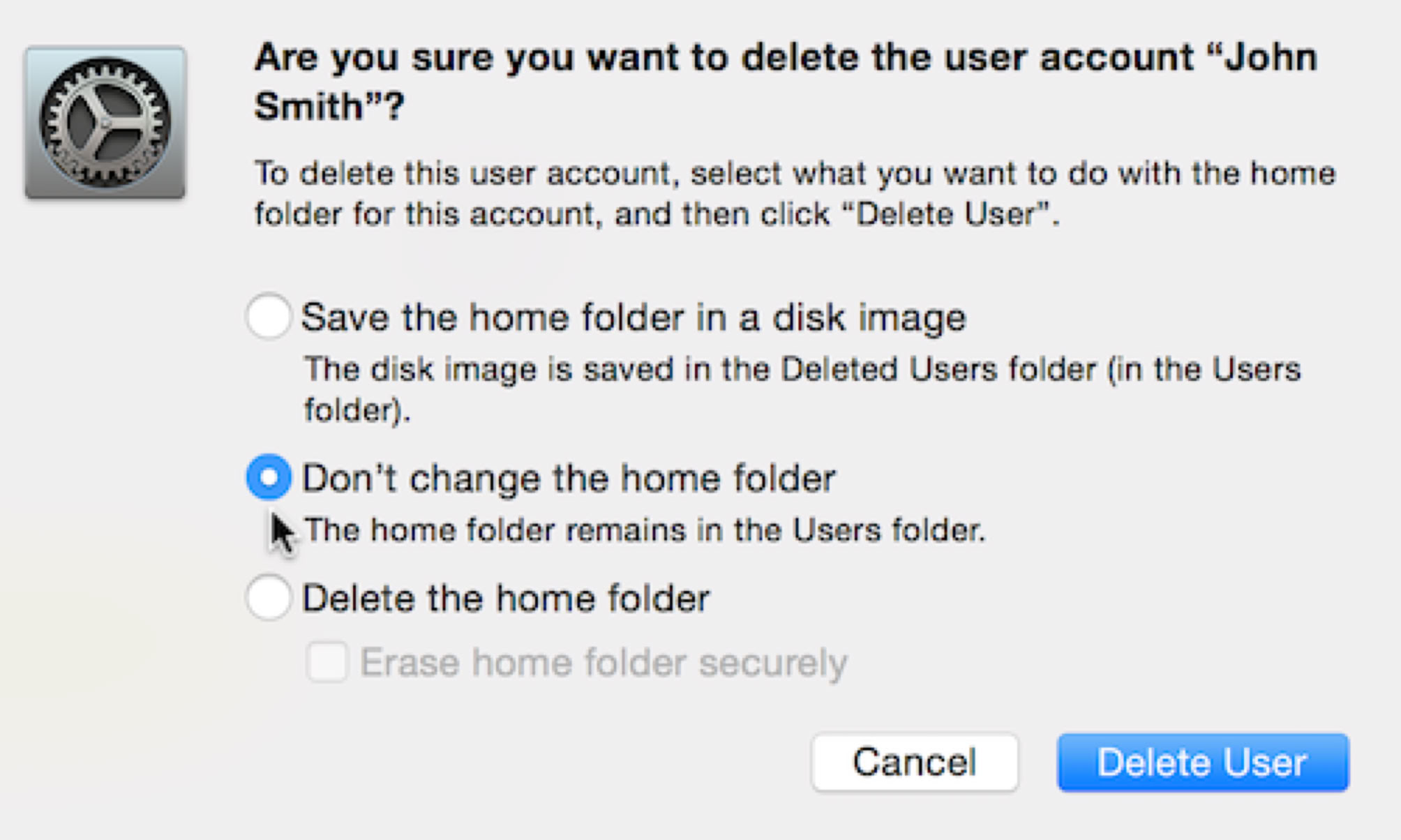 By doing this you’re removing the user from the system directory, but keeping the user content on your computer.