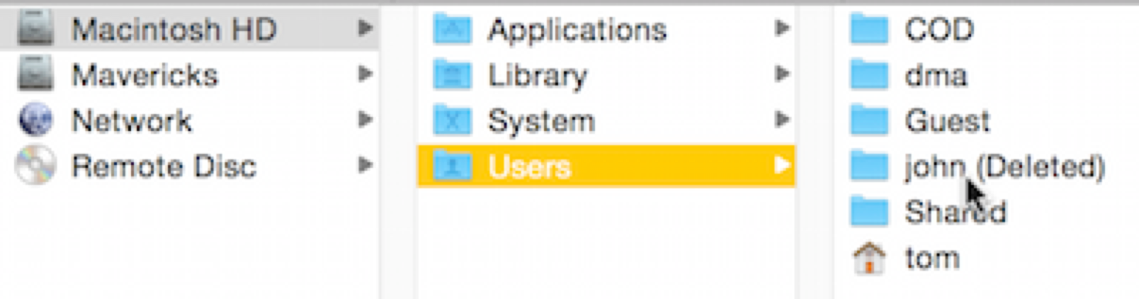 5.Next, go to the Finder and in Users find the deleted user, which will be labelled like this: