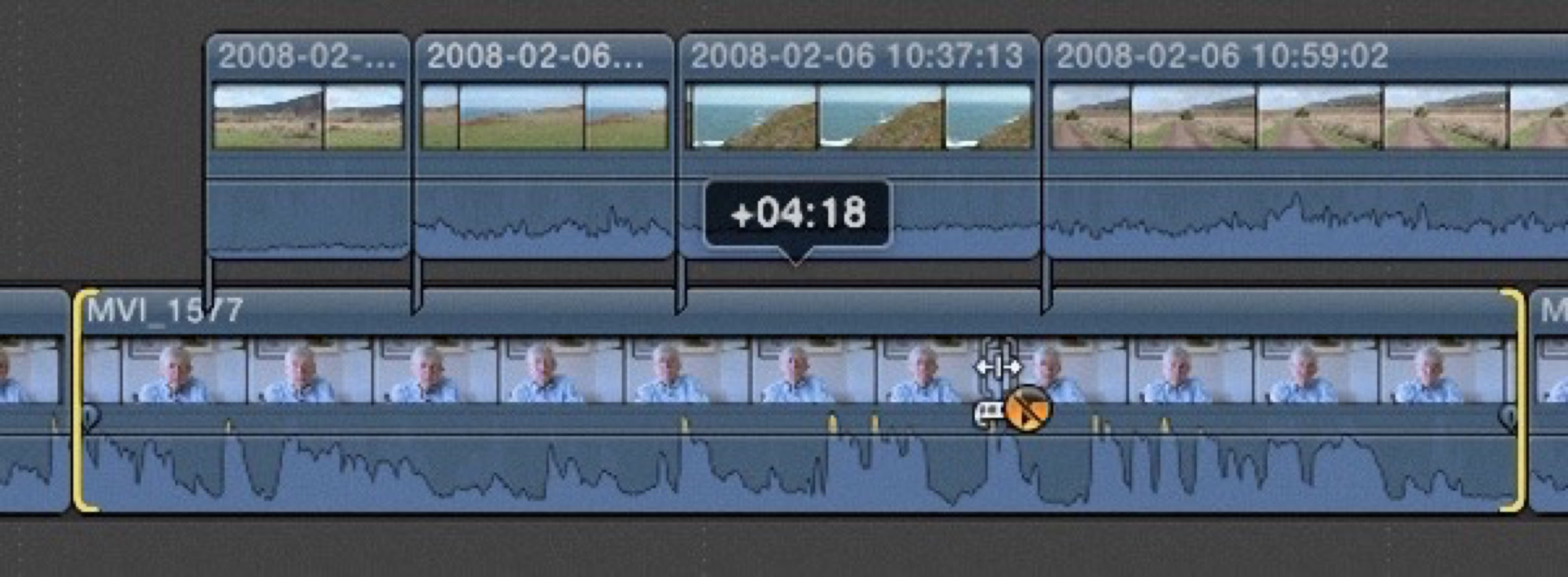 This is another important editing change in this version of FCP. Previously whenever you activated the Trim tool to do a slip or a slide edit on a clip in the primary storyline any connected clips would move with the clip on the primary. This would also happen if you used the Position tool and wanted to move a clip in the Timeline. Sometimes it was really helpful to be able to move a clip with all its attached connected clips in the magnetic timeline, but other times, particularly when slipping a clip, this was a hinderance. To keep the connected clips fixed in their positions in the Timeline, and to move the primary clip underneath, hold the grave key (the tilde key next to the number 1). With the grave key held, you can slip or slide or position a clip without moving the connection points with it. An icon will appear on the clip indicating that you’re repositioning the clip without effecting the connected clips.
