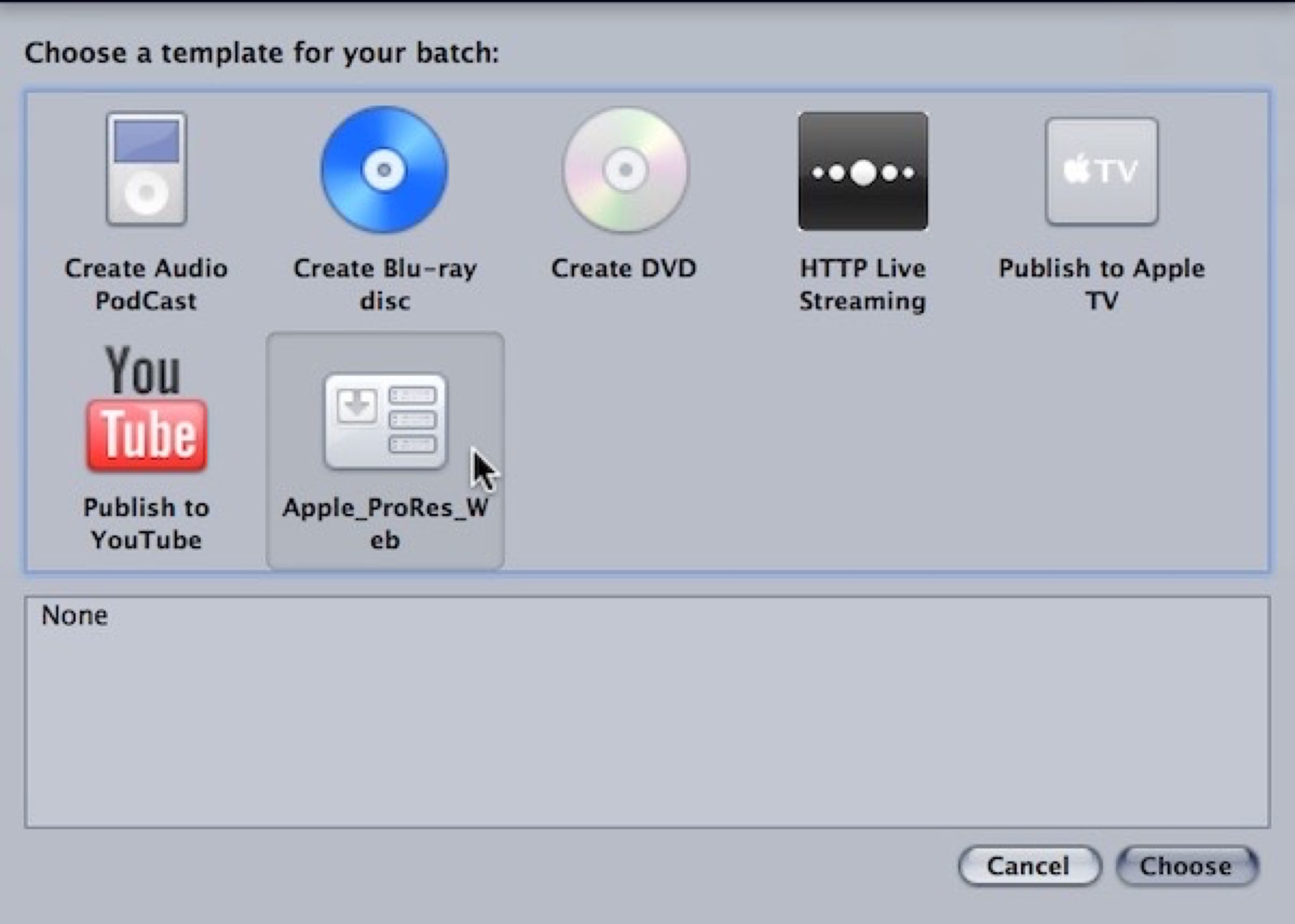 Compressor has new batch called Apple ProRes Web that includes three settings, one for Apple devices, one for a ProRes master, and one that’s 960x540 H.264 for the web.