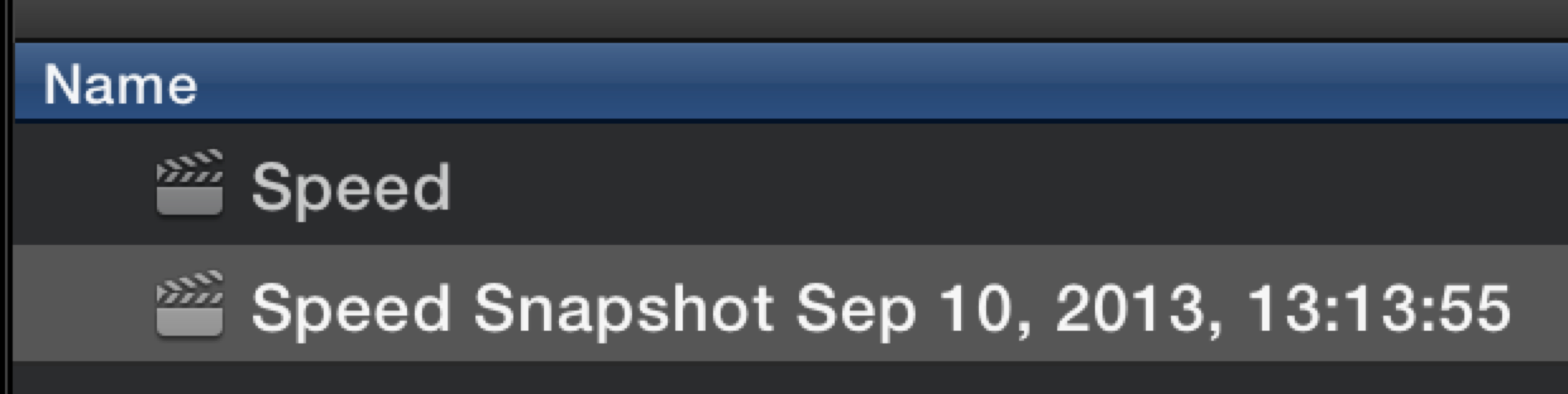 If you do go back and start working with a snapshot, it might be a good idea to duplicate it again, or rename it, as the date/time won’t be valid. I’ve seen quite a few people getting messed up going back into time stamped versions and not updating or changing the name the application gives the project version or snapshot as FCPX calls it.