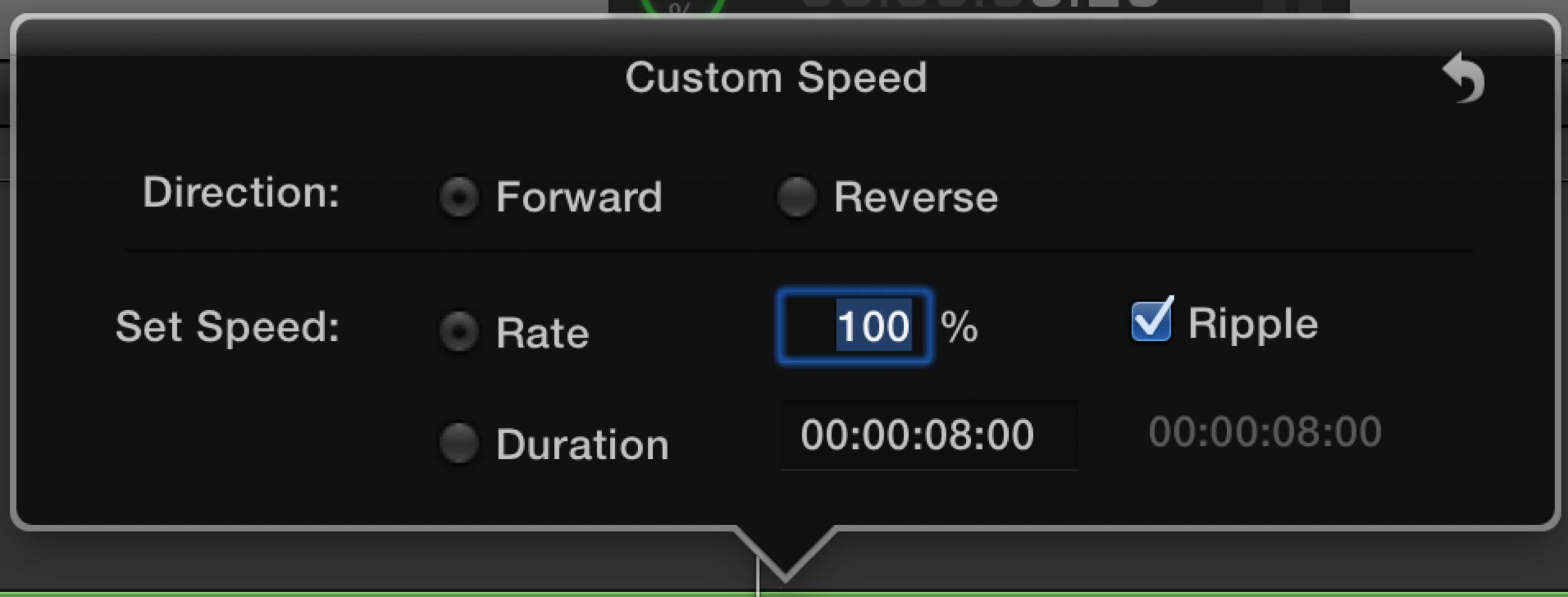 Notice you now also have the option to ripple the project or not ripple the project. If you uncheck ripple, the clip will either be cut off if you slow it down, or the project will be filled with a gap clip to keep the project duration constant.
