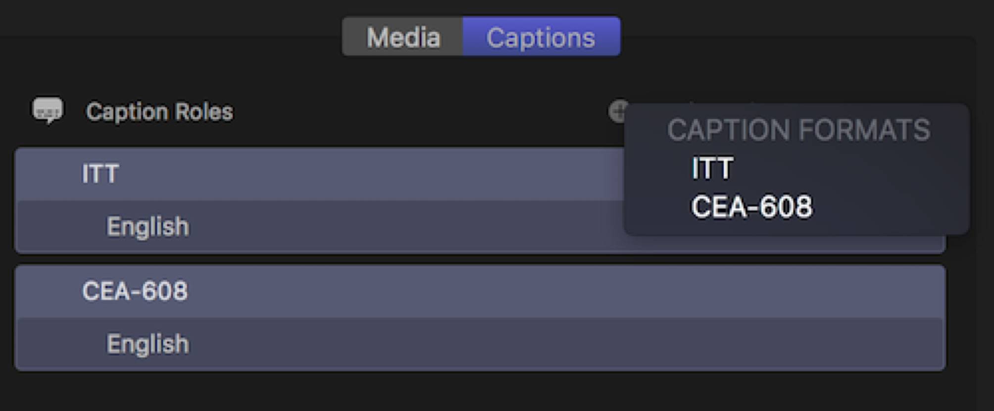 Closed Captioning is now supported directly in FCP 10.4.1 and Compressor 4.4.1. This new feature has meant a number of interface changes in the Timeline, Index, and Share dialog. There is also a new Role for Captions, separate from the Titles role, and a new Captions inspector. Closed Captioning works with two standards: CEA-608 used in the US and on all DVDs, and iTT (iTunes Timed Text) used by Apple of course, and also by Amazon Prime video, and YouTube. You set the Captions type in the updated Roles editor.