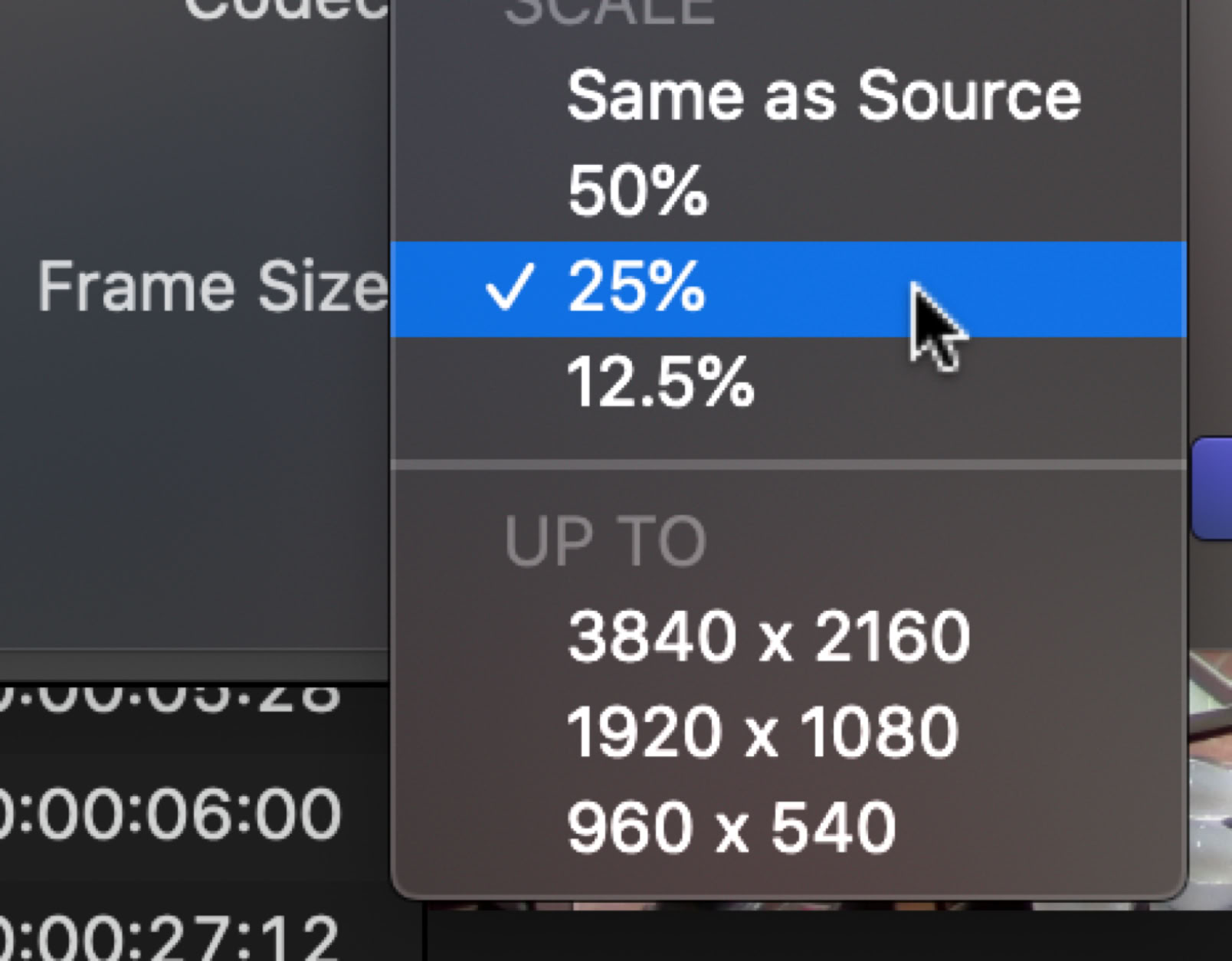 You can choose between ProRes Proxy, better quality, but larger file, or H.264, smaller compressed files. You can also pick the size of proxy you want.