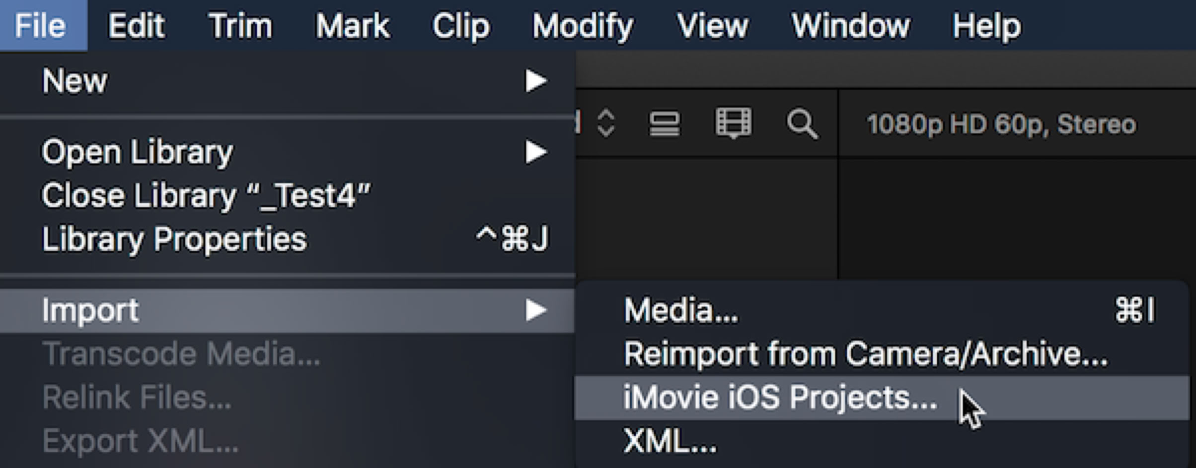 The iPhone has become a major source of video for all sorts of productions, not just cat videos. Assembling your 4K HEVC clips in iMovie for iOS is a really useful tool. It’s very straight forward to take these iOS iMovies directly into FCP. You can use the Share function in iMovie and then upload to iCloud or transfer via AirDrop to your computer. I like using Share to iTunes in iMovie. When you connect your phone to your computer to sync with iTunes, inside your phone under File Sharing/iMovie you’ll see the project which you can pick up and drag and drop anywhere you want, onto whatever drive you want on your system. Once the project is on a local drive it can be imported from FCP’s File>Import menu.