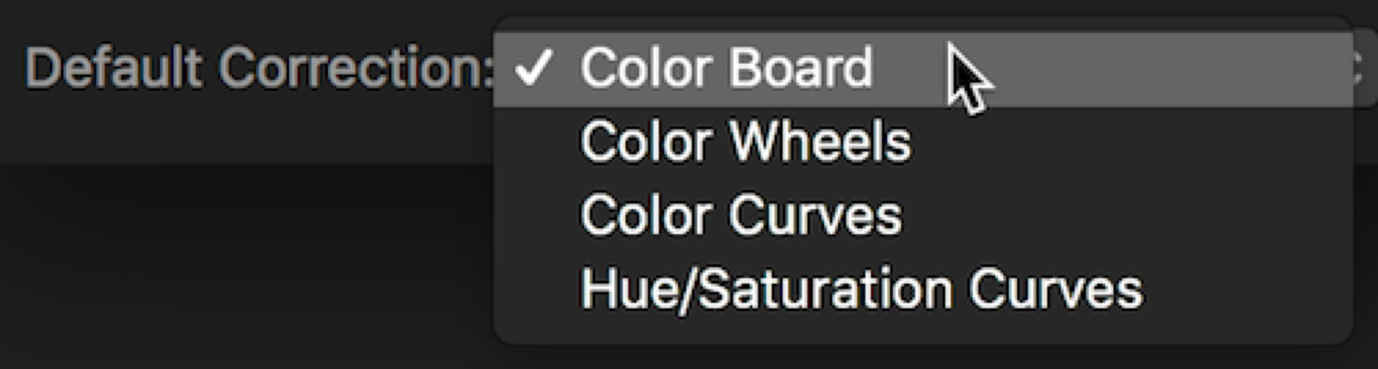 There are a few new preferences. In Editing preferences you can set which color correction tool to be your default. The application default is the Color Board, but you can set Color Wheels, which might be many people’s choice, or Color Curves, or Hue/Saturation Curves.