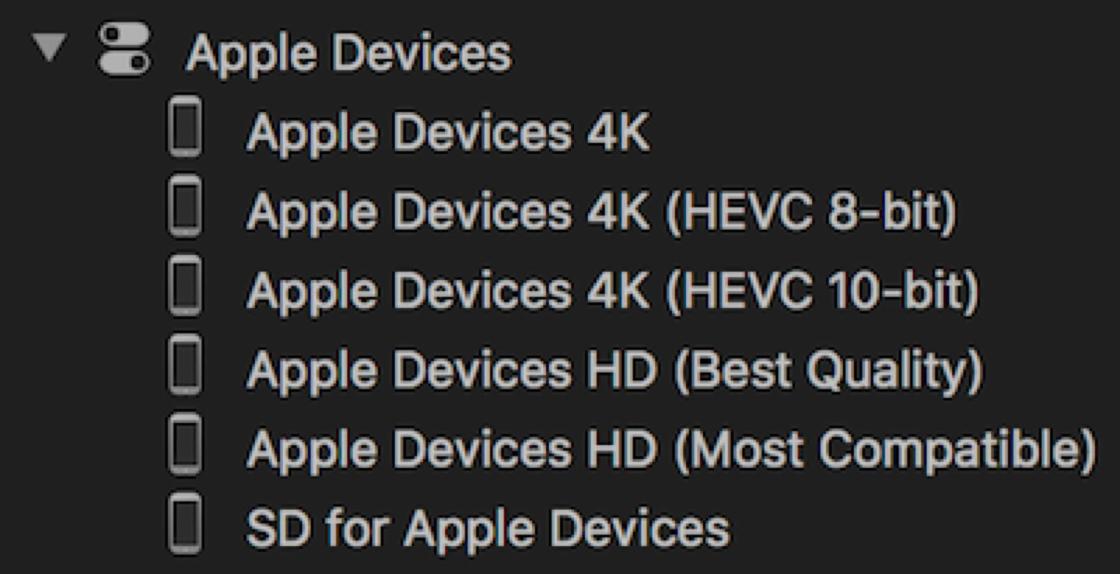 When converting ProRes 422 video to HEVC you’d be hard pressed to see the difference. The HEVC file will be about an eighth of the file size. I wouldn’t use this for mastering or archiving, but for someone who has the capacity to play it back, it’s huge advantage. Be warned however, compressing to QuickTime H.265 can be quite slow, especially to 10-bit. On the other hand the Apple Devices presets compress really well.