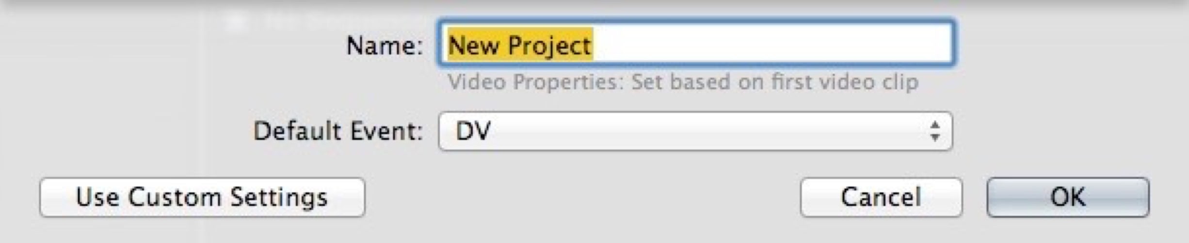 New Project Dialog